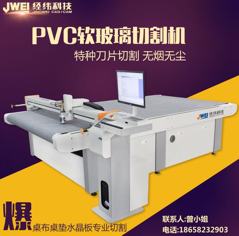 1、产品简介 专业用于切割PVC软玻璃,塑料窗帘,PVC窗帘,塑料桌布的裁剪等,专门制作桌垫,桌布,超市窗帘等.切割3毫米以内的软玻璃,采用震动刀切割,从而比激光切割更具有优势,无色无味,不会对PVC软玻璃切割机的操作人员造成身体上的伤害,同时该PVC软玻璃切割机是采用激光定位,即十字光标定位,从而让切割更精确,更精密,达到完美。