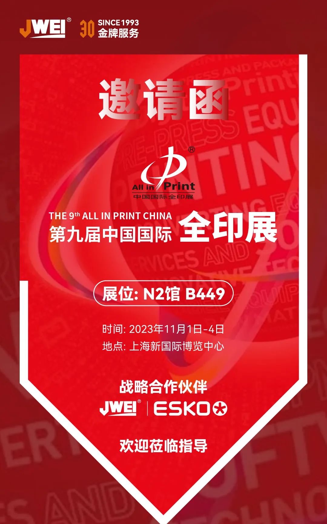 2024年11月1日-4日,第九届中国国际全印展将在上海新国际博览中心举行,经纬数控(展位号:N2B449)携手战略合作伙伴——包装印刷及产品外包装结构设计的行业领跑者ESKO艾司科共同