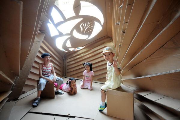 用瓦楞纸为亲爱的老师搭建一座爱心小屋,绿色环保,别出心裁,用经纬瓦楞纸裁切机可以裁切出各种复杂图案,让小屋充满趣味和爱心。