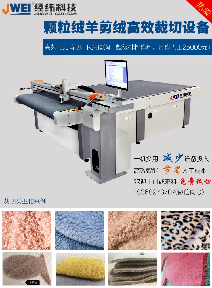 2.这是一种数控平板的智能裁切设备,只需要利用电脑设计版型,排版,导入数据即可有效裁切,所以会提升材料的利用率50%以上,人工也可以省掉很多,节省成本不在话下。