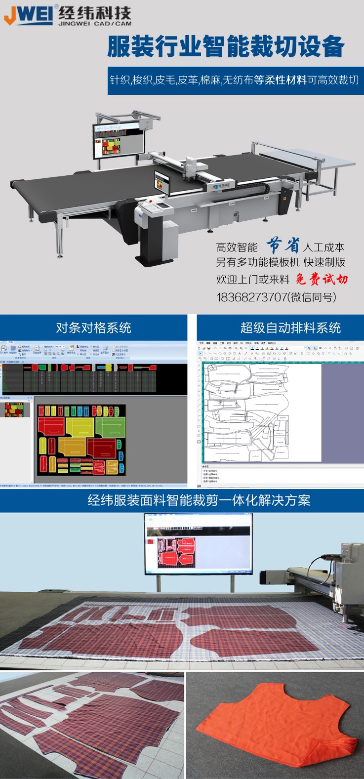 经纬科技研发的服装面料裁切设备,可以对麻、桑蚕丝、粘胶、醋酯纤维、涤纶这五种面料进行良好的裁切,配有自动收送料、自动对条对格、自动排料等功能,是服装生产企业提高生产效率的优选设备,了解详细的设备信息,请联系在线客服。