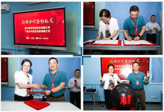 随后,宁波经纬数控设备有限公司董事长林立雪和和印·爱欧图文总经理汪泓签字交换,此次的签约标志着双方建立了稳固的战略合作伙伴关系,通过双方的合作,资源融合,一起共创双赢!