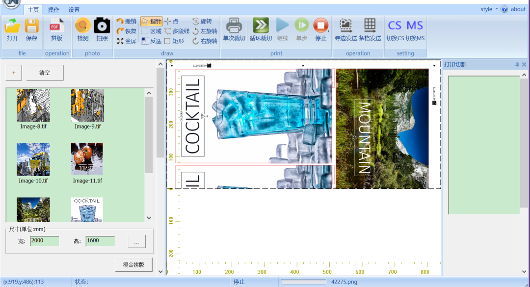 多种图像任意组合,快速智能混合拼版。节省成本及人工拼版时间,算法自动提供最优拼版方案,异形拼版利用率85%以上。