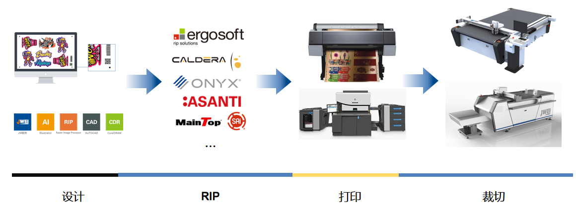 KT板切割机可用于户内外写真、海报、灯箱、展示展架、个性立牌、旗帜、横幅、易拉宝、车贴、磁贴、广告字牌等产品的裁切制作,常规的工作流程是先通过印前系统,如JWPD软件进行自动批量出图、批量印前处理、自动抠图、二维码、批量生产文件等一系列动作,随后通过RIP色彩管理系统+UV&喷绘系统进行色彩喷绘处理,接着通过JWCS任务系统进行图形处理、设计优化、任务管理、视觉定位,最后通过KT板切割机裁切系统进行异形裁切,可自动送料、自动裁切、自动收料、随时关注裁切情况数据等等。该KT板切割机可配置震动刀工具、拖刀工具、半刀工具、铣刀工具等,快速完成各种广告材料的异形裁切,同时也具备各种角度开槽,如90度,120度等,切割速度可达1500mm/s,切割厚度可达50mm,当然是需要跟进不同材料不同尺寸不同形状而定。KT板切割机有效工作范围常规尺寸有2.5*1.3米,2.5*1.6米供选择,如有其它尺寸需求,经纬也是可支持定制化。