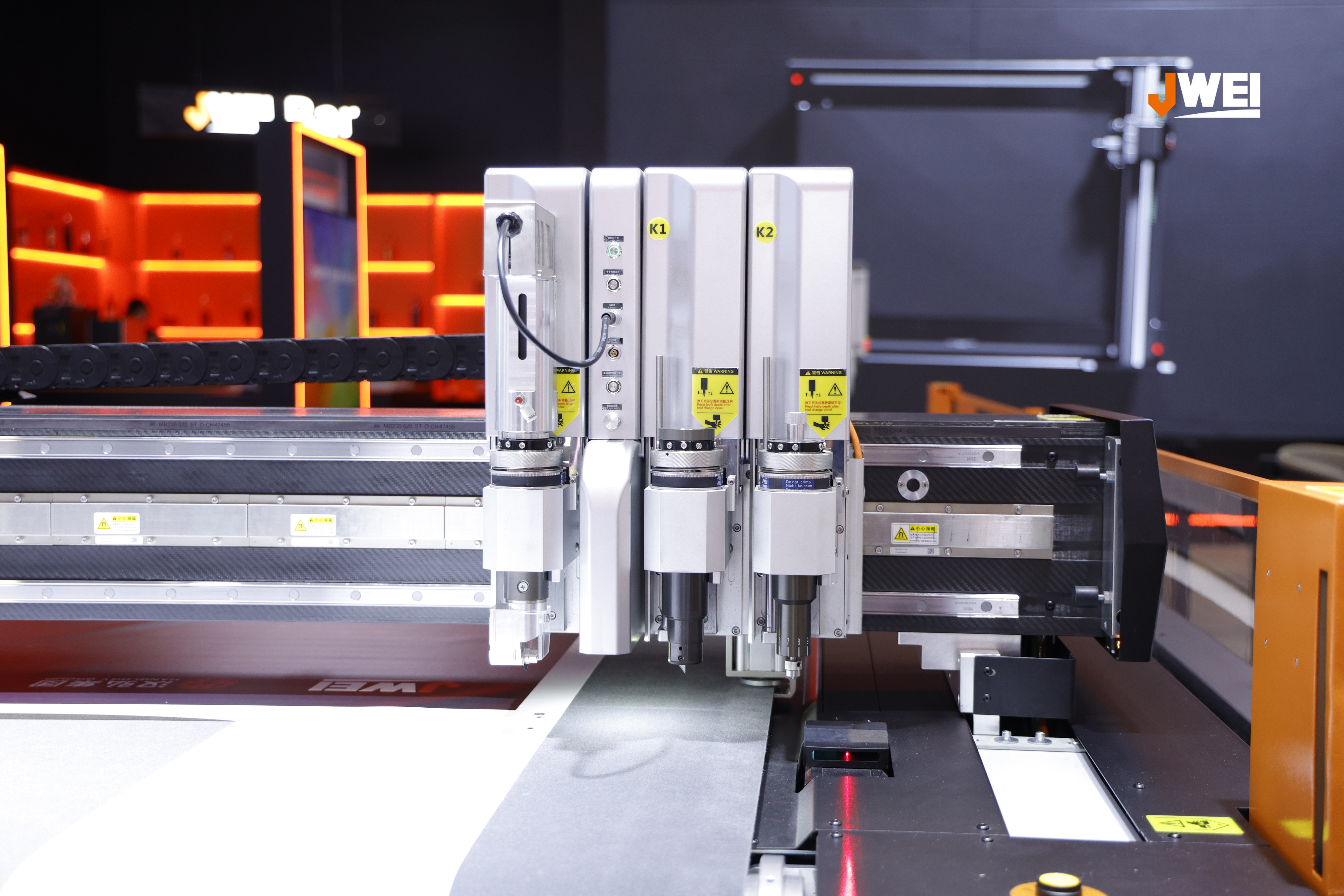 SL5232广告裁切机是继SL3232大幅面裁切机之后推出的又一超大幅面裁切设备,拥有5.2×3.2米的超宽幅面,并搭载卷材主动送料架,支持超长幅面的自动裁切;它不仅具备大幅面裁切能力,还实现了超高速裁切,采用磁悬浮直线电驱技术,切割速度最高可达3米每秒,特别适用于软膜、旗帜布、帐篷布等大幅面材料的加工;同时,该设备在精度方面表现优异,采用零接触式磁悬浮与总线控制电驱,最小可切割直径仅1毫米的圆,真正做到在大幅面裁切时兼顾速度与精度,满足高效生产与精细加工的双重需求。